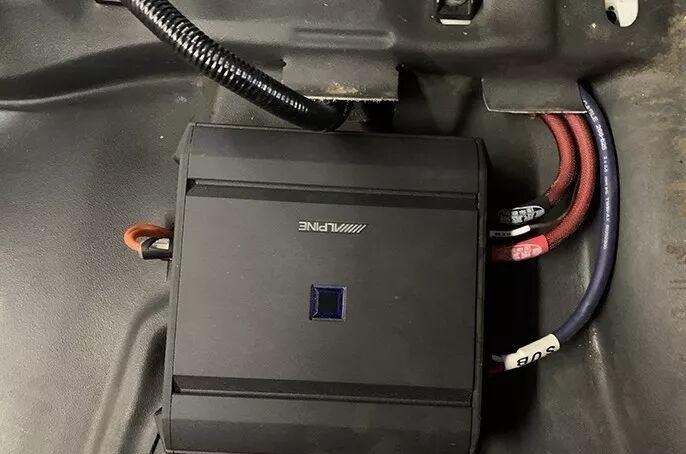 Another Alpine single-channel power amplifier is also modified under the driver’s seat.