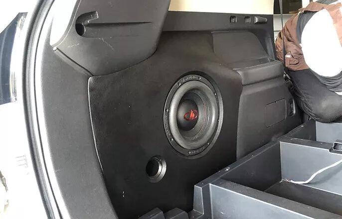 The customer of Mitsubishi Outlander modified a sound system. At that time, the subwoofer was the ten-inch bass brought by the owner. Due to the owner’s hearing improvement and space usage requirements, it did not occupy the space of the trunk, but also had to improve the bass effect. At present, the most popular subwoofer unit is the American DD.