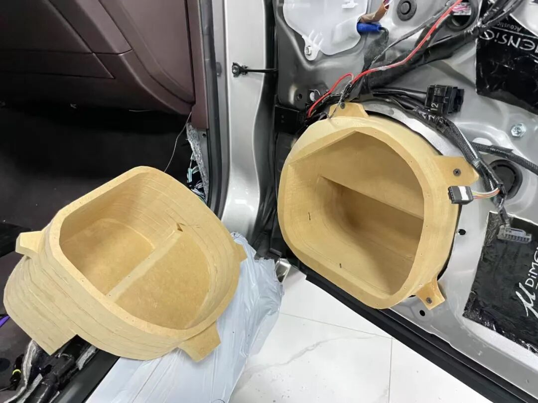 Original Door Panel Yes “A broken speaker that leaks “, we passed 3 D scanning + resin infusion , create a sealed box to improve the solidity of medium and low frequencies 50% 。