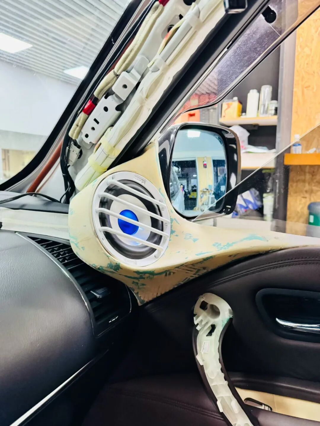 ● Positioning:The directivity of trebles, especially flat trebles like the Biwei Blue Mirror, is crucial. The modifier passed repeated sound field tests to convert the tweeter unitAnd a mid-bass unitPrecise positioning inA-pillar andThe triangular position of the door panel forms the best incident angle with the driver’s seat, thereby achieving the best listening feeling of the emperor’s seat.
