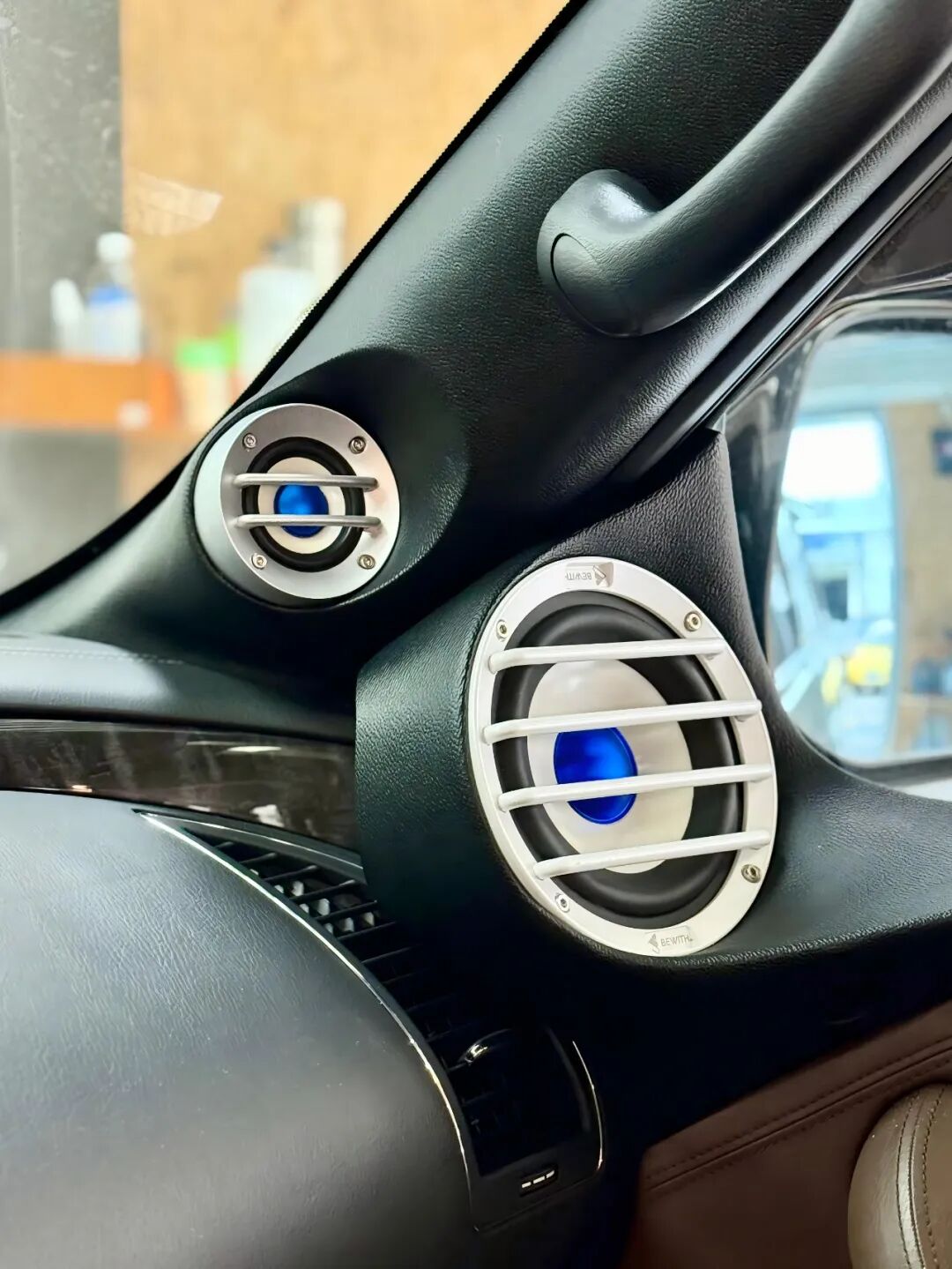 ● Process:Fully hand-customized cups, which blend perfectly with the original A-pillar trim panel. From the initial skeleton production, to repeated polishing and shaping, and then to the final coating, every step has condensed the modifierFuPatience and skill. The final result is not only visually natural, without any sense of disobedience, but also achieves the best diffusion and positioning effect acoustically.